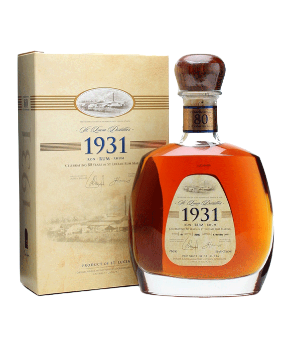 The Chairmans Reserve 1931 1st Edition Rum is produced by St Lucia Distillers, who have emerged from a tradition of the on-site, house-special rum production that was a common feature of the West Indian sugar plantation. Sugar’s by-product, molasses was fermented and distilled to rum, the demand for which has been a constant through the fluctuations of West Indian plantation economies. By the late 1950s, two distilleries remained, one at Dennery, the site of the Barnard family plantation, and the other Geest-owned at Roseau, the location of the now St Lucia Distillers Group of Companies.