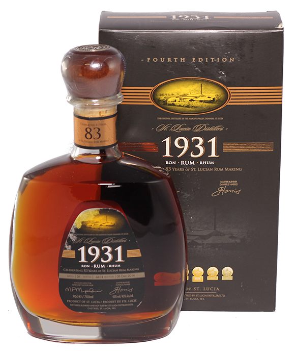 Chairmans 1931 4th Edition Rum is produced by St Lucia Distillers, who have emerged from a tradition of the on-site, house-special rum production that was a common feature of the West Indian sugar plantation. Sugar’s by-product, molasses was fermented and distilled to rum, the demand for which has been a constant through the fluctuations of West Indian plantation economies. By the late 1950s, two distilleries remained, one at Dennery, the site of the Barnard family plantation, and the other Geest-owned at Roseau, the location of the now St Lucia Distillers Group of Companies.